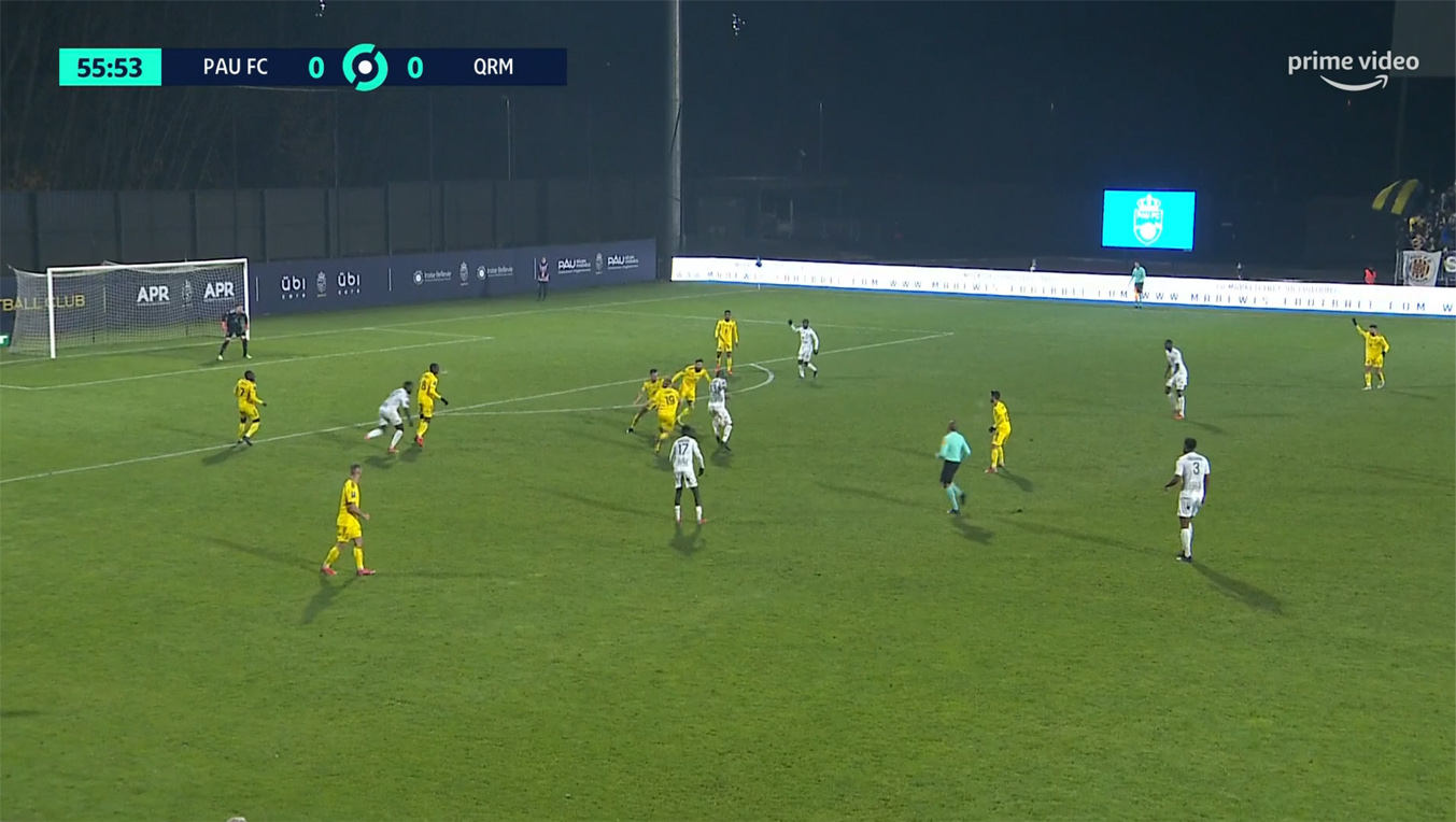 Si le premier but était largement évitable, celui-ci était plus compliqué à gérer. Au départ Koffi loupe un dribble dans l'axe qui permet aux joueurs de QRM de se retrouver immédiatement en 3 contre 3.